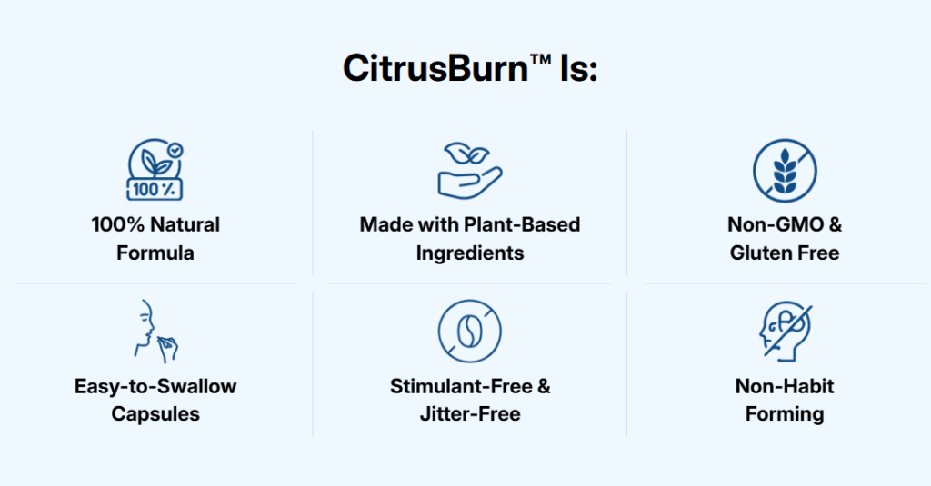 Rather than extreme diets or harsh stimulants, the CitrusBurn™ formula works by supporting the body’s natural fat-burning processes as part of a balanced lifestyle.